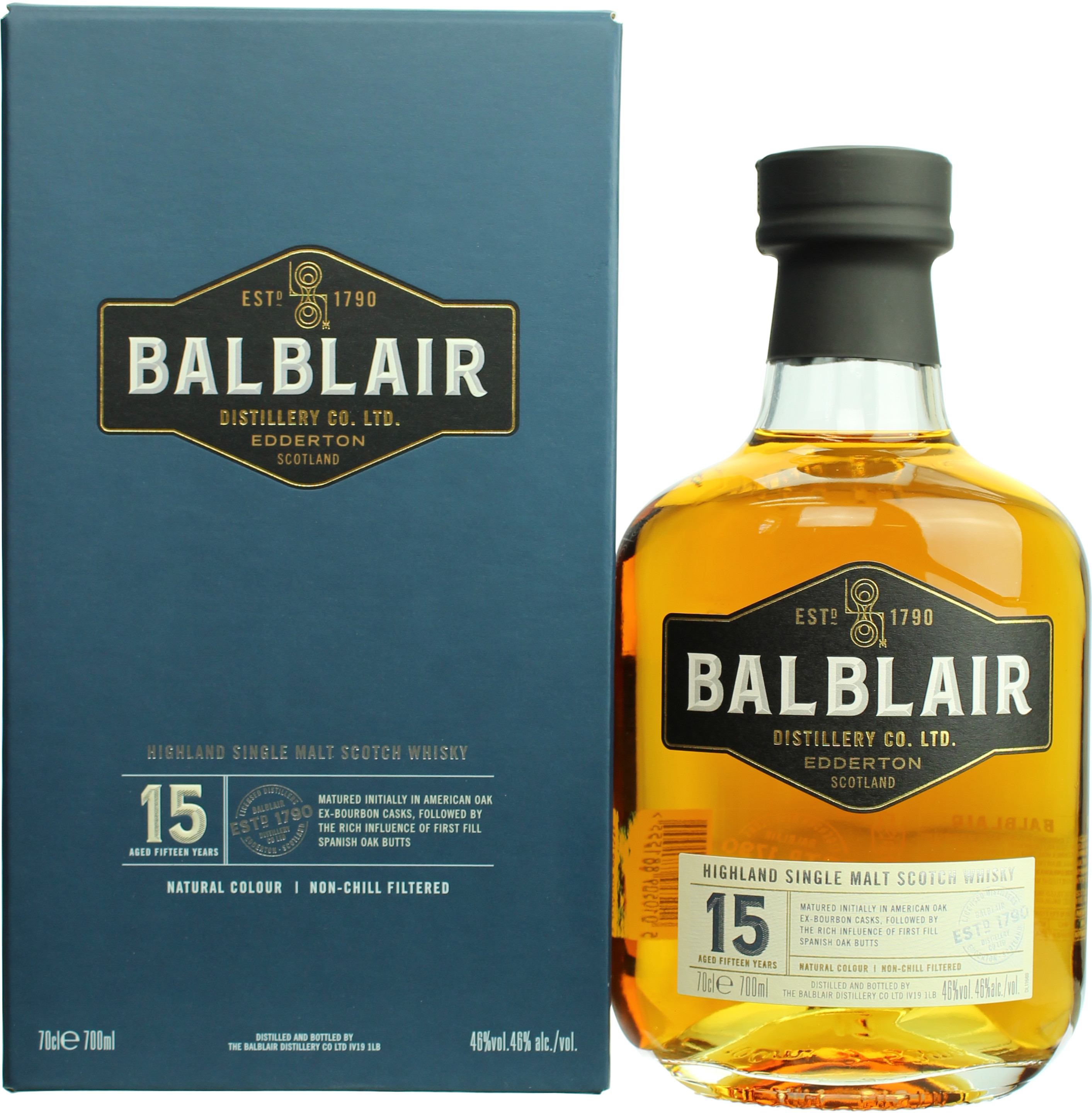 Der Balblair 15 Jahre gehört zum neuaufgelegten Kernsortiment, welches 2019 komplett neu gestaltet wurde. Die Lagerung erfolgte zunächst in Ex-Bourbonfässern. Anschließend wird der Single Malt in spanischen First Fill Oak Butts gefinisht. So entstand ein komplexer und körperreicher Singe Malt mit Aromen von Honig, Lebkuchen und getrockneten Früchten. Im Geschmack zeigen sich würzige Noten von Leder und dunkler Schokolade sowie tropische Früchte und Gewürze. Der Balblair 15 Jahre wird mit 46.0% vol. abgefüllt und kommt ungefärbt und ungefiltert in die Flaschen.