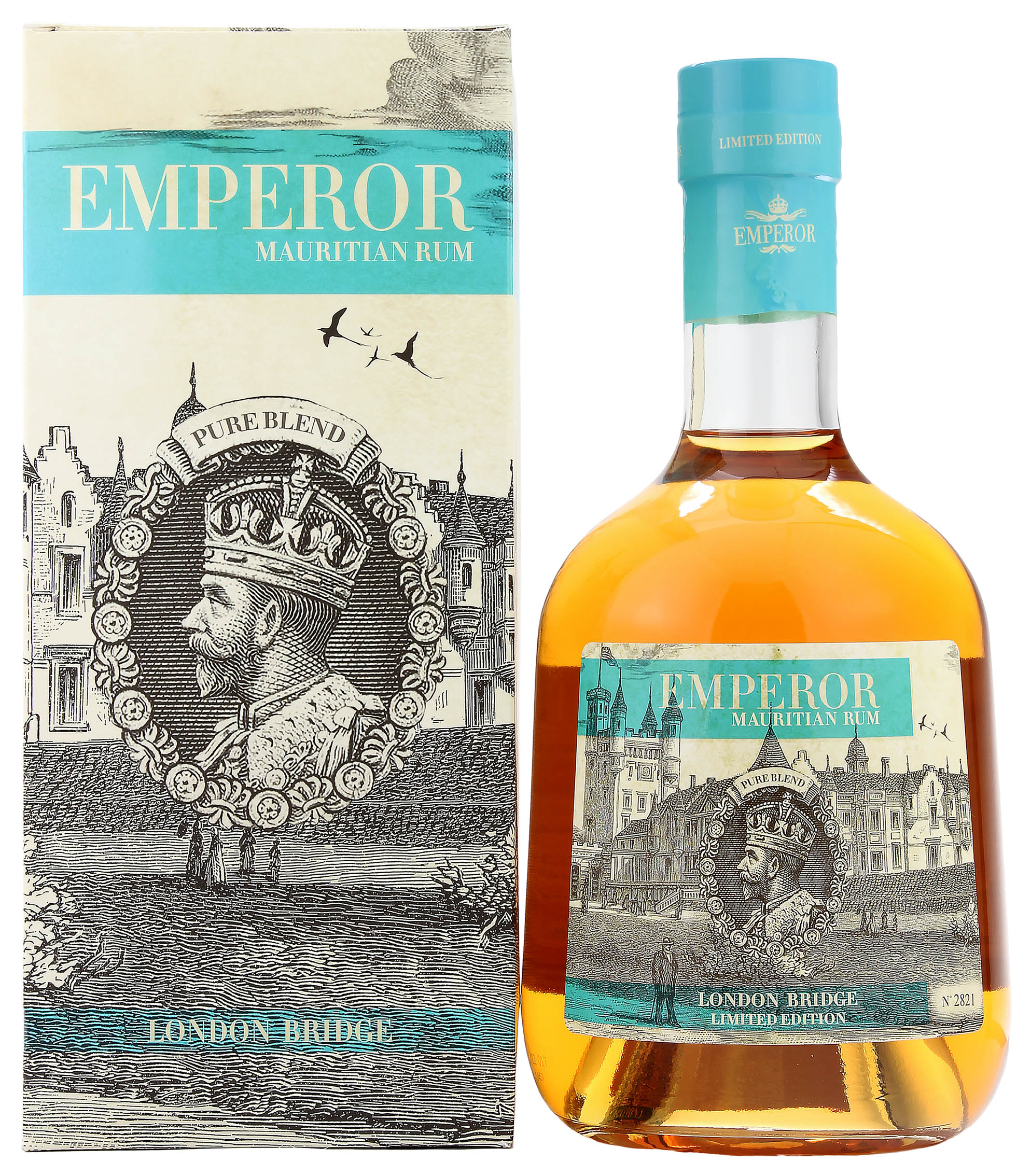 Der Emperor Mauritian Rum London Bridge ist ein Assemblage aus verschiedenen Stilrichtungen. Verwendet wurde eine Mischung aus mauritischen Rums, die sowohl aus reinem Zuckerrohrsaft als auch aus Melasse destilliert werden. Die Reifung erfolgte zwischen 5 und 12 Jahre in Eichenfässern. Im Anschluss wurde der Rum für weitere 12 Monate in alten Fässern, die einen Sauternes Premier Grand Cru von Château Clos Haut-Peyraguey enthielten, gefinisht. So entstand ein Rum mit Aromen von saftigen Beeren, Aprikosen und feinen Gewürzen. Im Geschmack begeistern Noten von getoasteter Eiche, Eiche und Aprikosen. Abgefüllt wurde die Limited Edition Emperor Mauritian Rum London Bridge mit 40.0% vol.