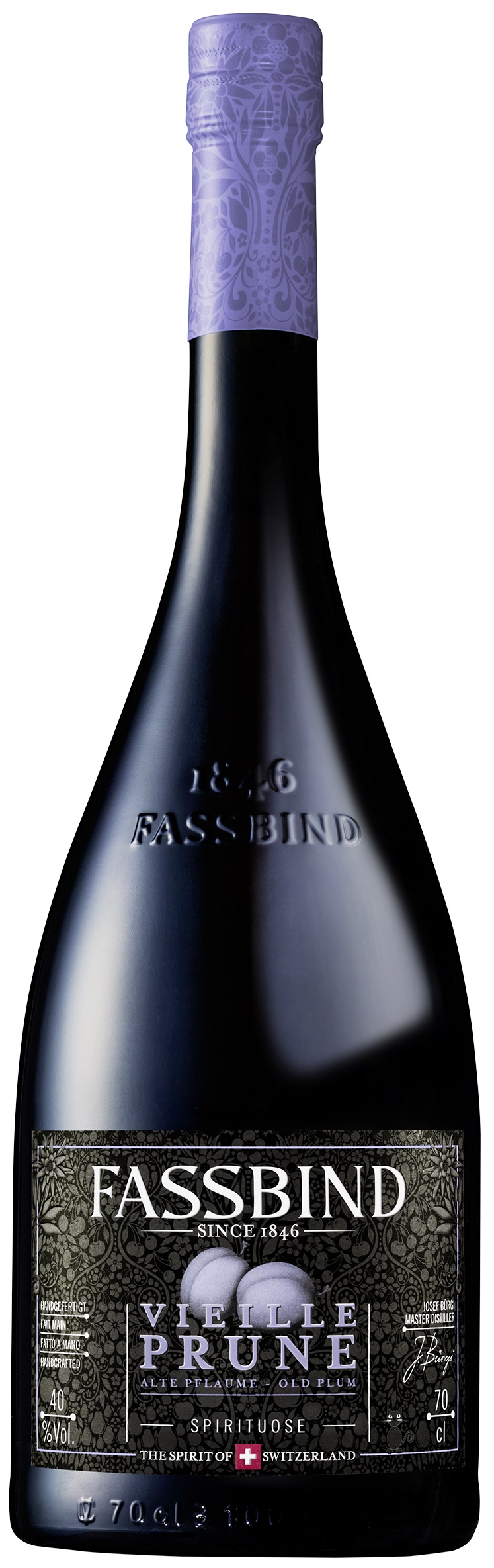 Der Fassbind Vieille Prune Barrique - Alte Pflaume wird aus frischen Früchten, die zum großteil aus der Zentralschweiz und dem Schwarzbubenland im Kanton Basel stammen hergestellt. In den Brennapparaten der Fassbind AG werden sie nach der langsamen Fermentation nach traditioneller Art destilliert. Nach der Destillation ruht der Fassbind Vieille Prune Barrique - Alte Pflaume für mindestens 2 Jahre in Edelstahltanks bevor er für einen Zeitraum von 14-18 Monaten in Eichenholzfässern reift und mit einem hausgemachten Bonficateur veredelt wird. Im Aroma sowie im Geschmack zeigen sich dezent Süße Noten die von Mandeln und fruchtigen Pflaumen begleitet werden. Abgefüllt wird der Fassbind Vieille Prune Barrique - Alte Pflaume mit 40.0% vol.