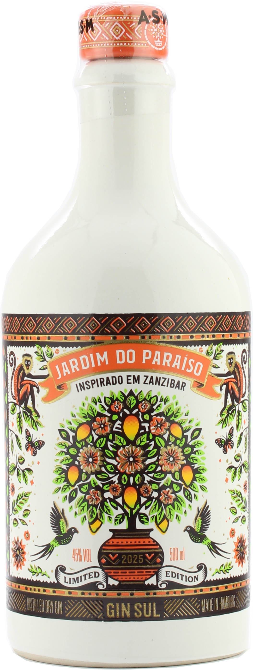 Der Gin Sul Jardim Do Paraiso ist die limitierte Abfüllung des Gin Suls für das Jahr 2025. Diesmal ist die Pflanzen und Kräuterwelt der Hafenstadt Sansibar das Thema der Sonderedition. Hierbei kommen Botanicals und Gewürze zum Einsatz die zum Teil auch direkt aus der Region stammen. Hierzu zählen Paradieskörner, Baobab und Kardamom. Abgefüllt wird der Gin Sul Zanzibar Jardim Do Paraiso Limited Edition 2025 mit 45.0% vol.