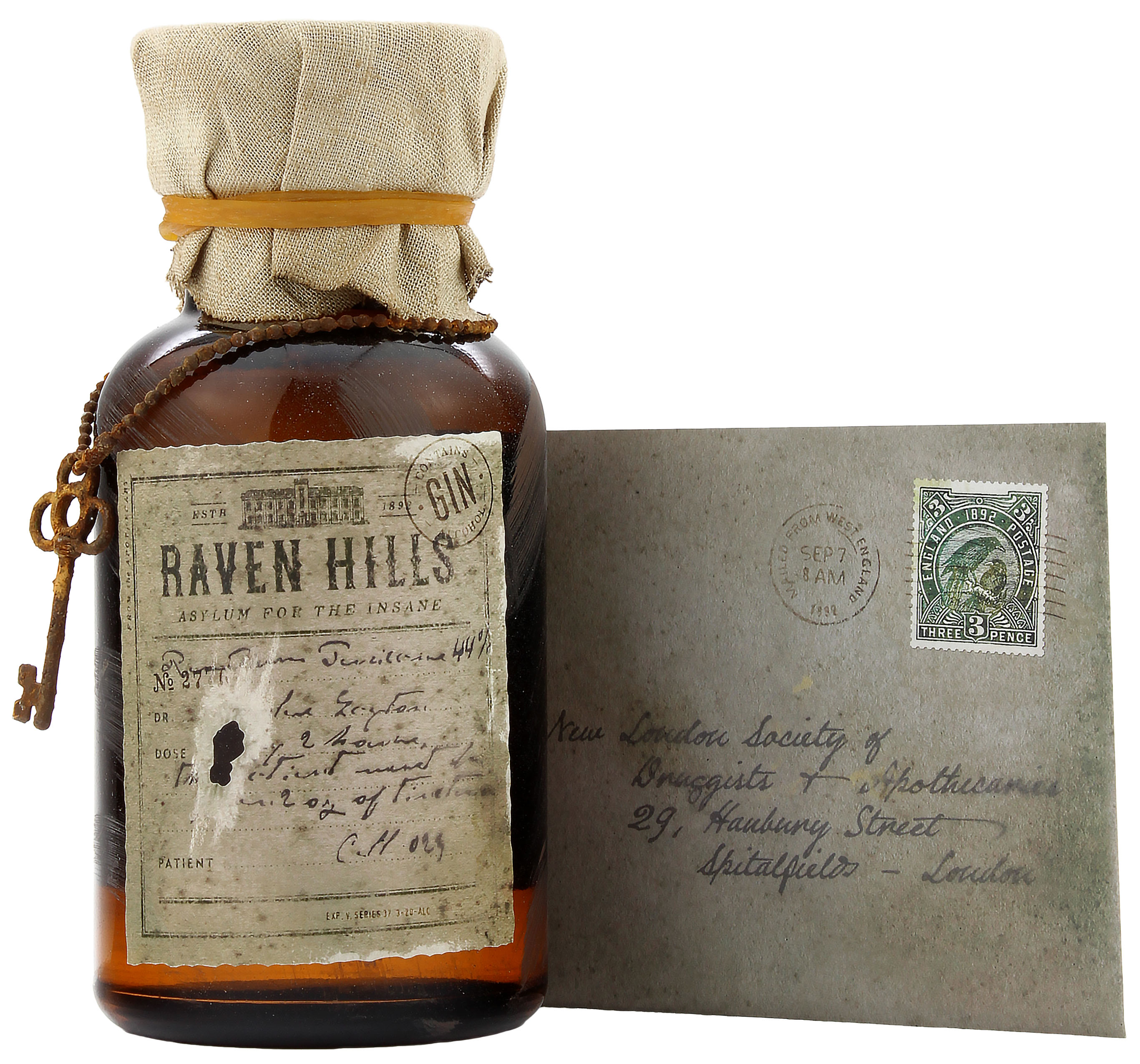 Kreiert wird der Raven Hills Asylum Gin von Copper & Brave mit Sitz in Bremerhaven. Dieser Gin erzählt die Geschichte des Apothekers Charles Layton, der in Raven Hills in einem Sanatorium für geisteskranke Kriminelle arbeitet. Bereits die Flasche erinnert an alte Apothekerflaschen. Bei der ersten Visite werden dem Apotheker alle Patienten vorgestellt, bis auf Patientin 23. Von Eifer und Neugier getrieben, sucht Layton diese Patientin in der Nacht auf. Dabei wird er mit den Worten „Helfen Sie mir, ich bin Dr. Helmine Schlegel“ empfangen... Abgefüllt wird der Raven Hills Asylum Gin mit 44.0% vol.