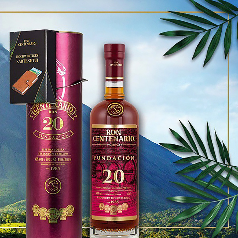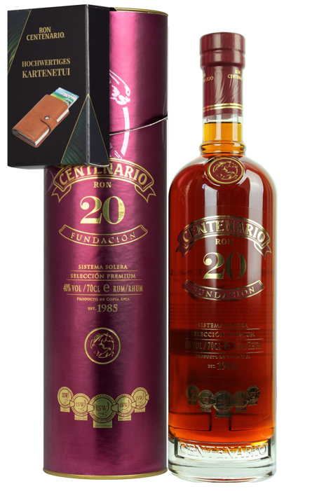 Der Ron Centenario Fundacion 20 Jahre mit einem Kartenetui.