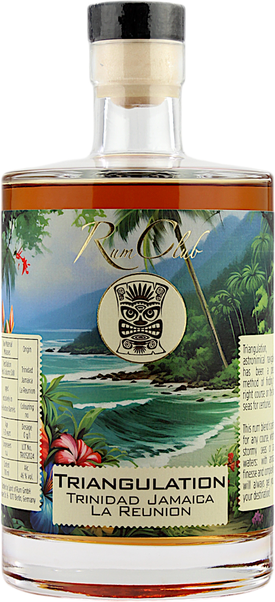 Der Rumclub Triangulation stammt von Spirit of Rum. Der Rumclub Triangulation ist ein Blend aus den drei Ländern Trinidad, Jamaica und La Reunion mit einem Reifungsalter zwischen 3 und 20 Jahren Fassreifung in Bourbonfässern aus amerikanischer Weißeiche. In diesem Verschnitt sind Stilrichtungen aus drei Ländern eingeflossen. Zum Einsatz kam typisch schwerer karibischer Rum aus Jamaika, leichter und fruchtiger Rum aus Trinidad und eher seltener Rum aus La Reunion. Abgefüllt wurde der Rumclub Triangulation mit 46.0% vol. Auf Färbung sowie der Zugabe von Zucker wurde verzichtet.