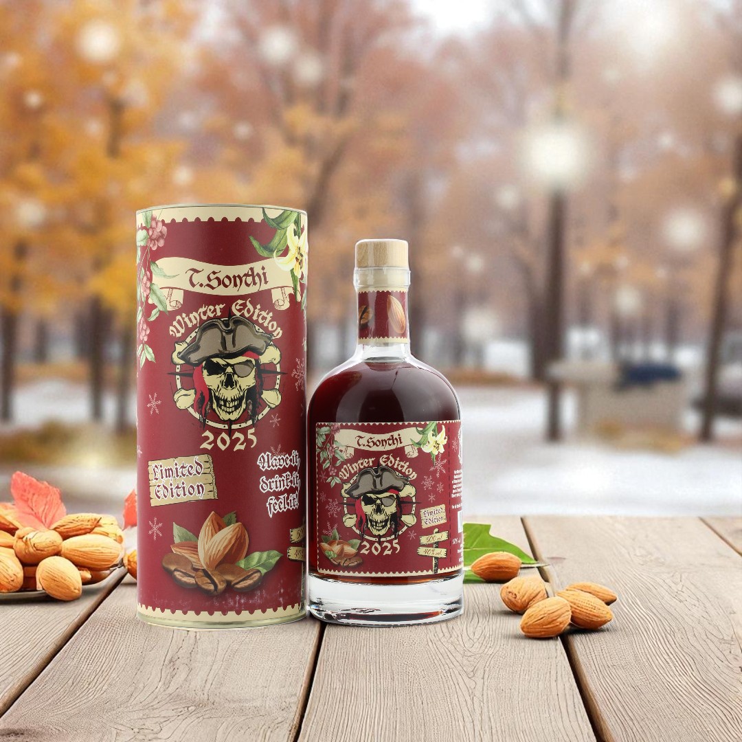 Der T. Sonthi Rum stammt von Thomas Sontheimer, welcher Anfang 2020 den Entschluss fasste, eigenen Rum zu kreieren. Für die limitierte Winter Edition 2025 wurde Rum aus Jamaika und Barbados miteinander vermählt. Dazu wurde Melasse des Zuckerrohrs aus den beiden Ländern verwendet. Die Reifung erfolgte in Ex-Bourbon-Fässer aus amerikanischer Weißeiche. Anschließend erhielt dieser Rum sein Finish im PX-Sherry-Fass, wodurch er seine weichen und komplexen Noten erhielt. Abgefüllt wird der T. Sonthi 10 Jahre Winter Edition PX Finish 2025 mit 40.0% vol.