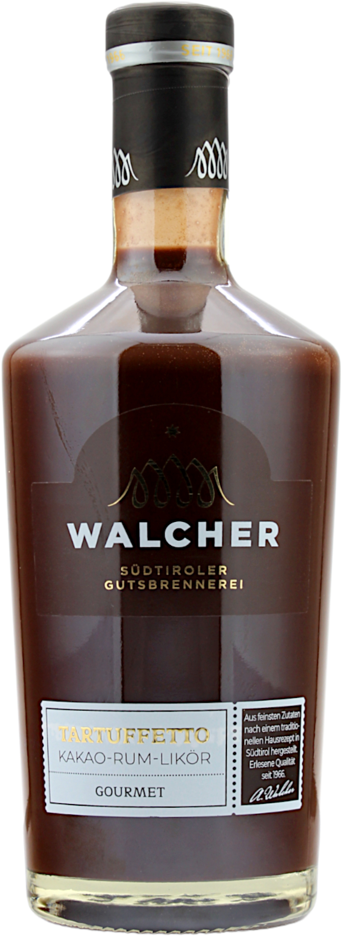 Der Walcher Tartuffetto stammt von der Edelbrennerei Walcher aus Südtirol. Die Familienbrennerei befindet sich in der neunten Generation und widmet sich der Destillation feinster Brände, Grappas und Liköre. Hergestellt wird der Walcher Tartuffetto aus karibischen Rum, Milch und edlem Kakao. So entstand ein cremiger Likör mit dichten Schokoladennoten, feinen Rumnoten und Kakao. Abgefüllt wird der Walcher Tartuffetto mit 17.0% vol. Der Walcher Tartuffetto eignet sich am besten pur als Digestif oder warm mit einer feinen Sahnehaube.